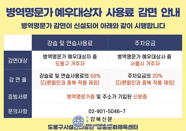 입장료, 주차료, 이용료 등 면제 또는 할인